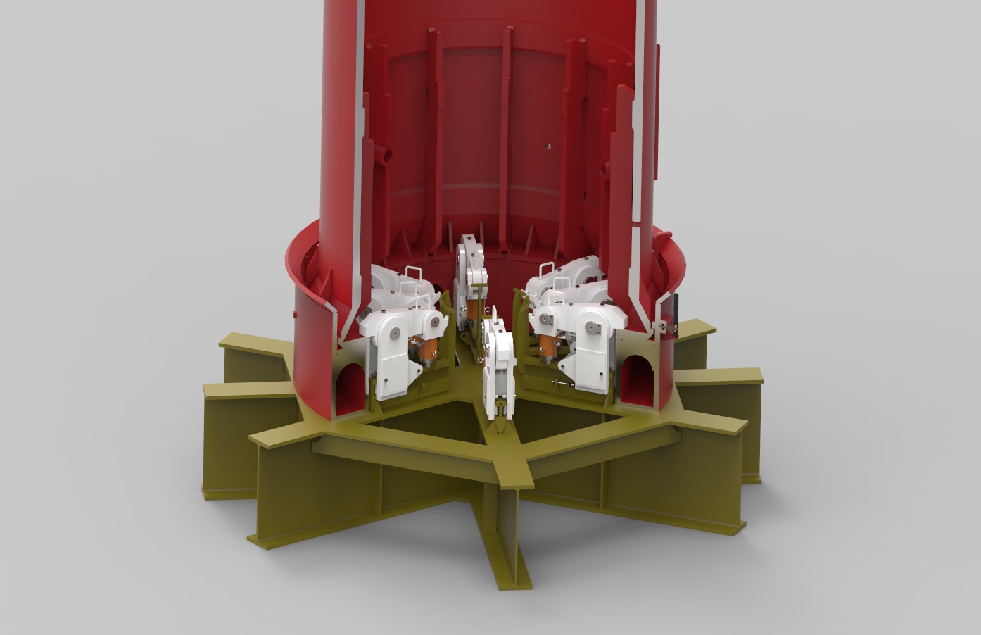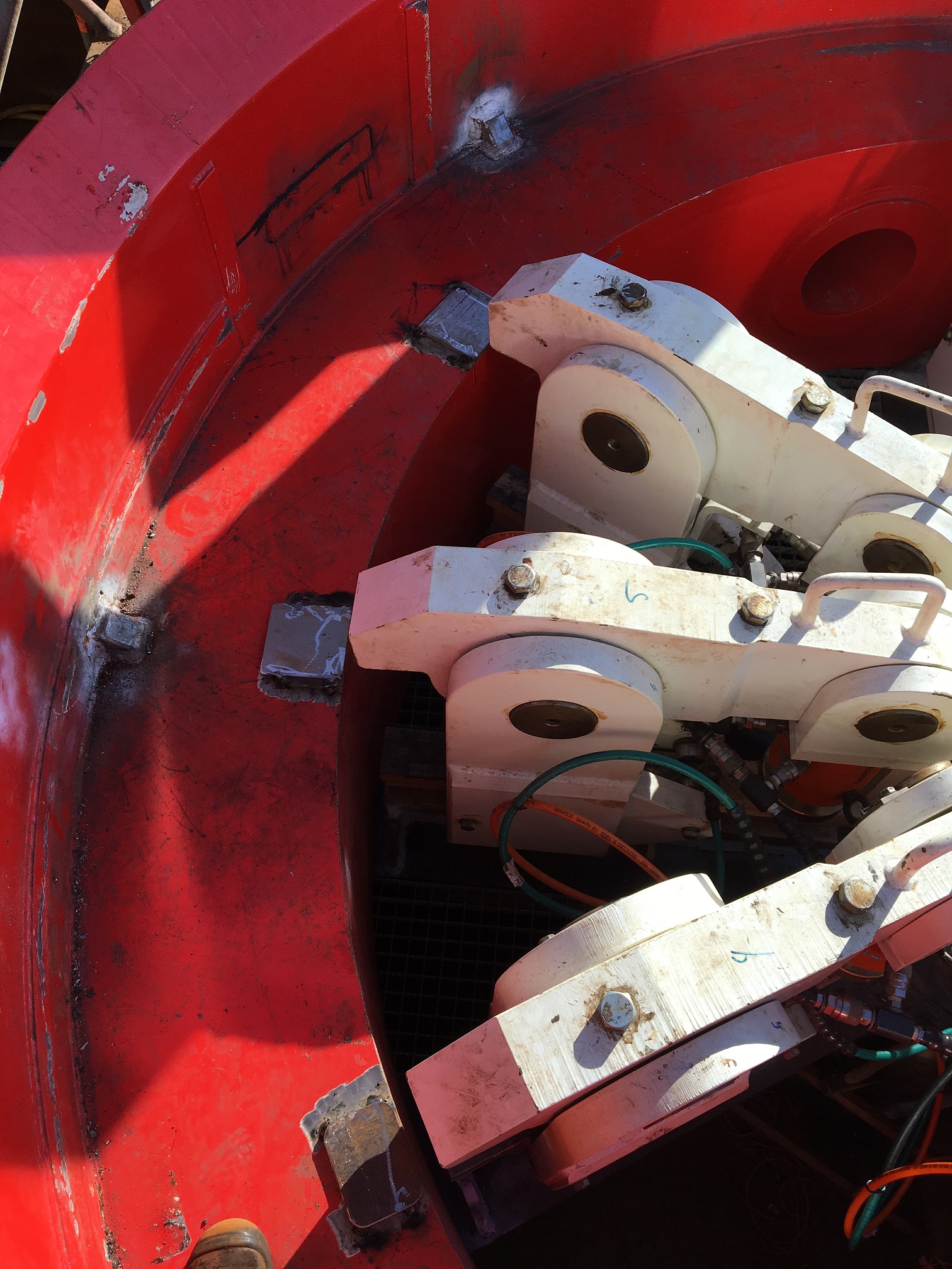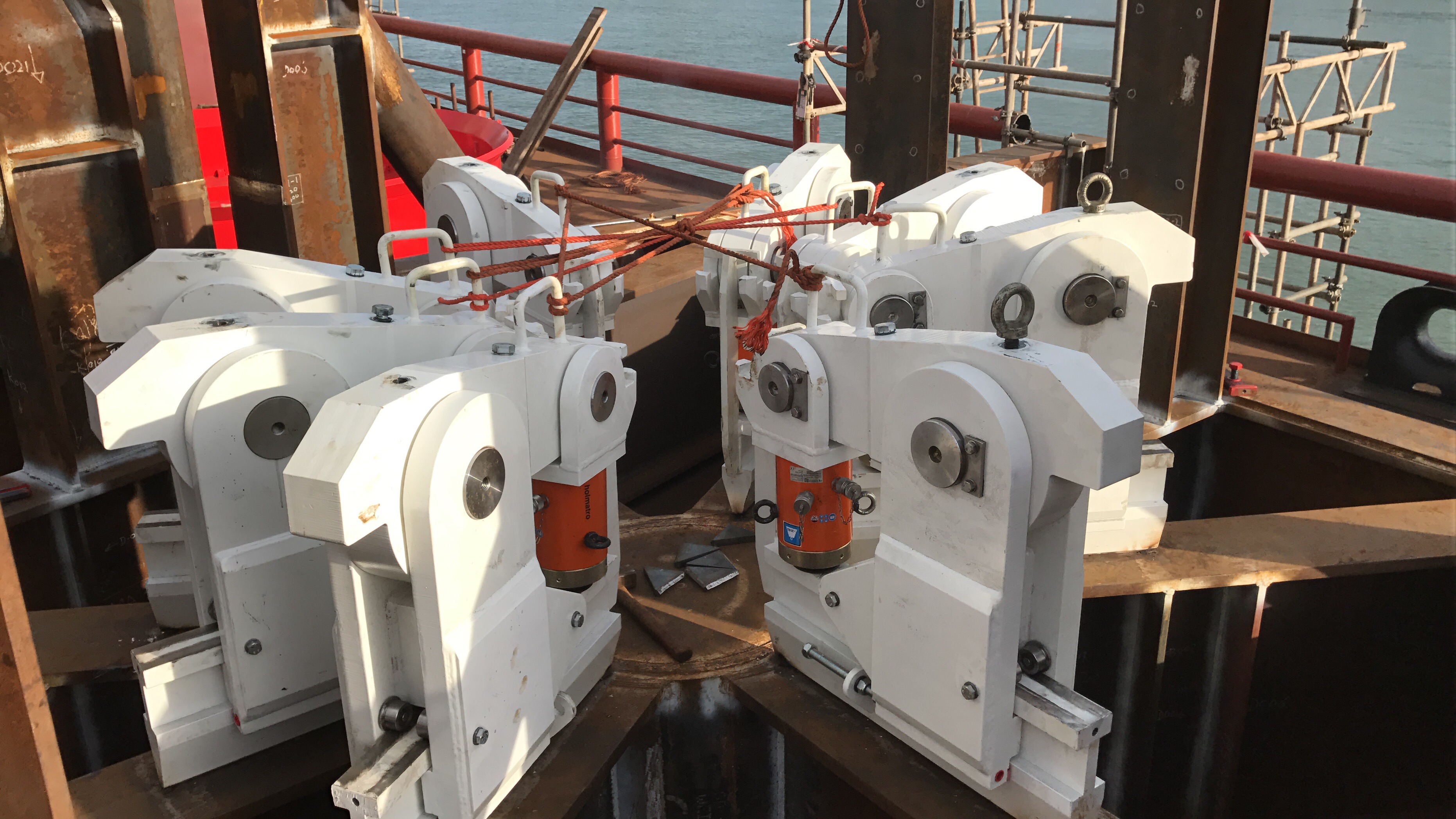 For the vertical transport of the Hydrohammer S-2500 we did the detail engineering of a set of sea fastening clamps. The clamps keep the hydrohammer S-2500 securely in vertical postion during transport of the hammer. The clamps are activated by standard Holmatro jacks.